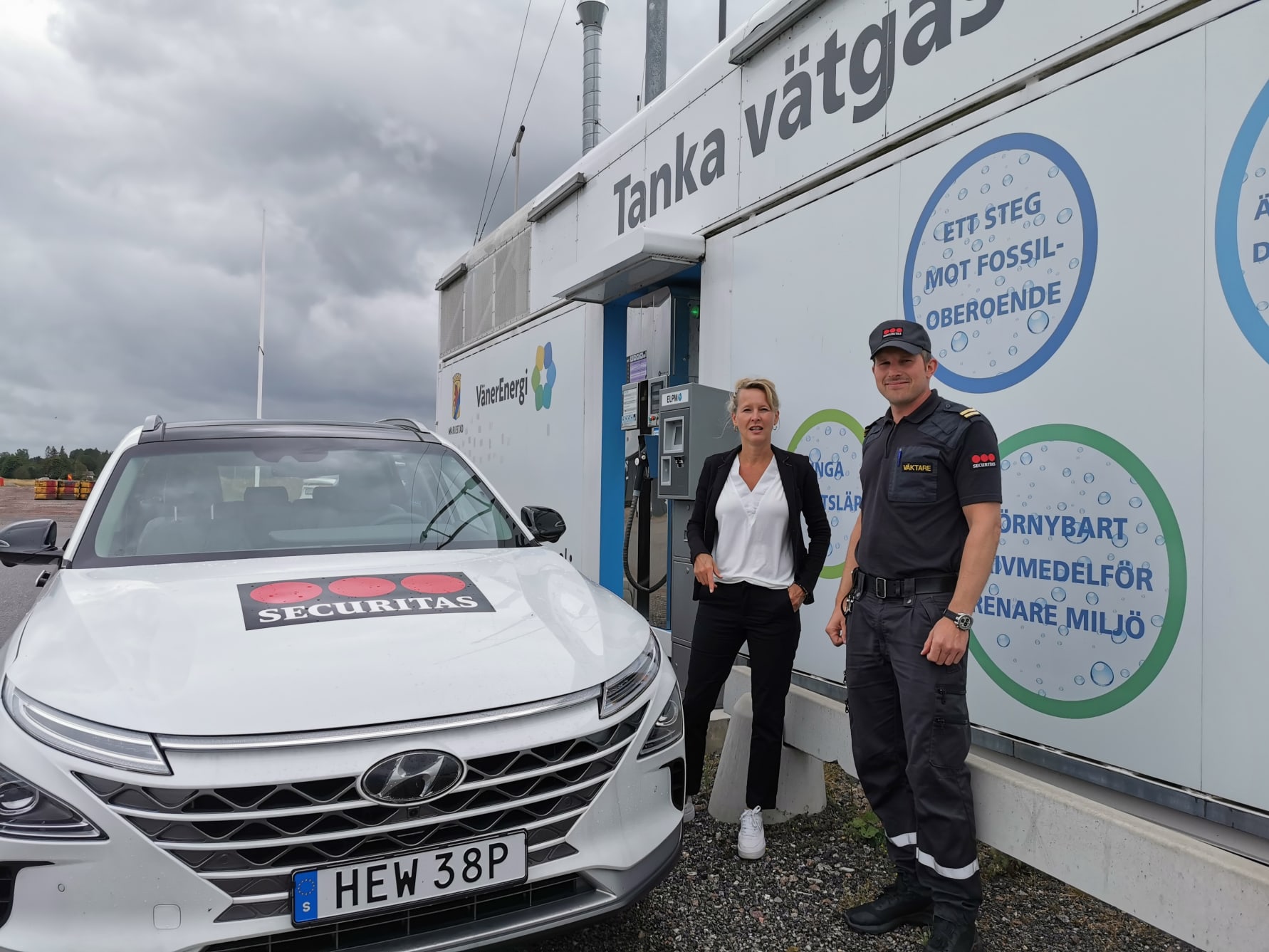 Mariestad kommun var först i världen att redan 2019 lansera en soldriven vätgasstation. Något som Securitas Sverige AB såg som en möjlighet med de klimatmål som bolaget satt upp för att minska CO2-utsläppen. Från och med augusti i år kommer Securitas Sverige ABs första vätgasbil som patrullerar i kommunen därför rulla på emissionsfri vätgas.